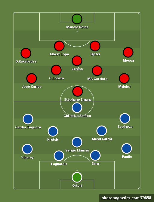 La novetat més important però, la podem trobar a la porteria amb la presència d’un Manolo Reina ja recuperat de la greu lesió de peroné que va patir en el darrer partit de la pretemporada i que espera recuperar el lloc que li correspon per tal d’ajudar l’equip a sortir del pou de la classificació de la Liga123.
