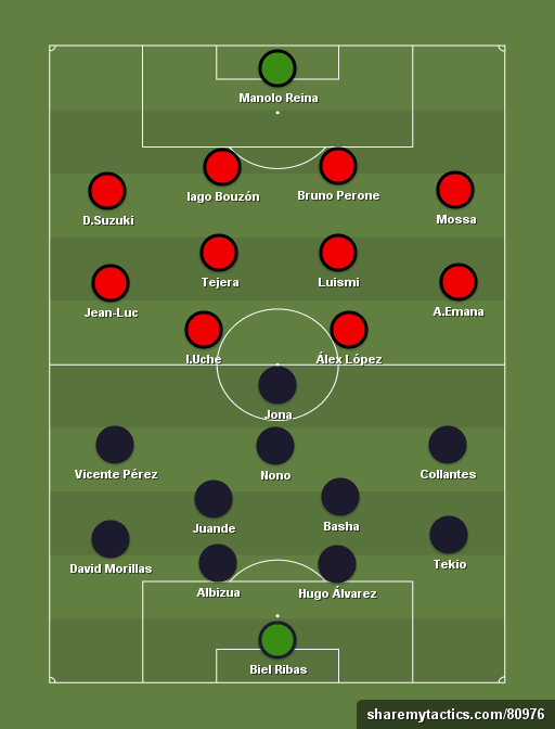 En ambdós compromisos, el preparador andalús ha dissenyat un onze pràcticament calcat. L’única variació que va presentar contra el líder respecte al duel anterior contra el quadre madrileny és la de Jesús Imaz per l’ex grana Vicente Pérez. Per tant, tampoc s’esperen nombrosos canvis per fer front a l’equip tarragoní tot i l’exigència de jugar tres partits en menys de set dies. Al final, aquest és un partit importantíssim de cara a la lluita per la permanència i l’entrenador local ha de disposar els seus millors homes sobre la gespa.