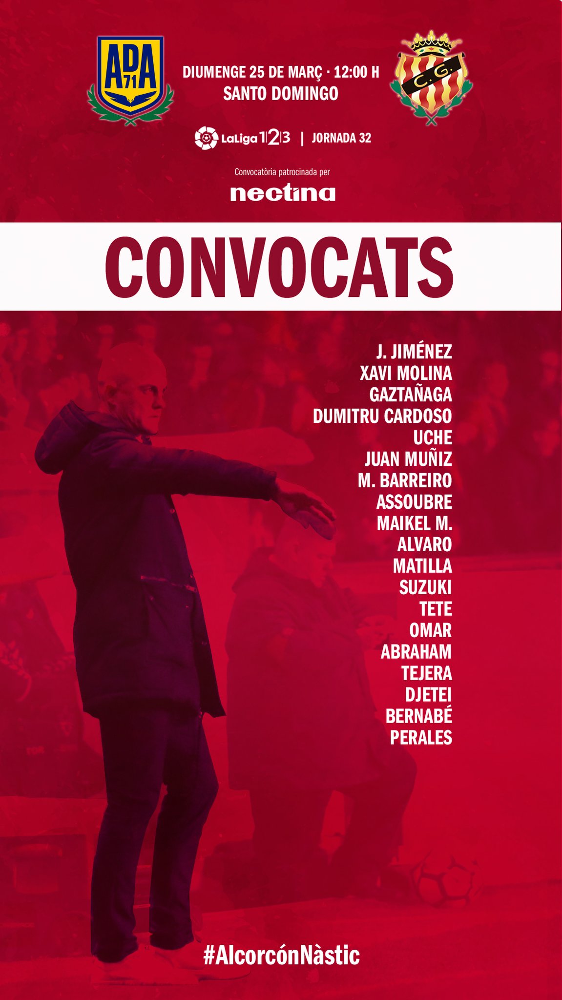 El club grana ha fet pública aquest dissabte al migdia la convocatòria de 19 jugadors que Nano Rivas s’endú a Madrid per enfrontar-se aquest diumenge al migdia davant l’Alcorcón.