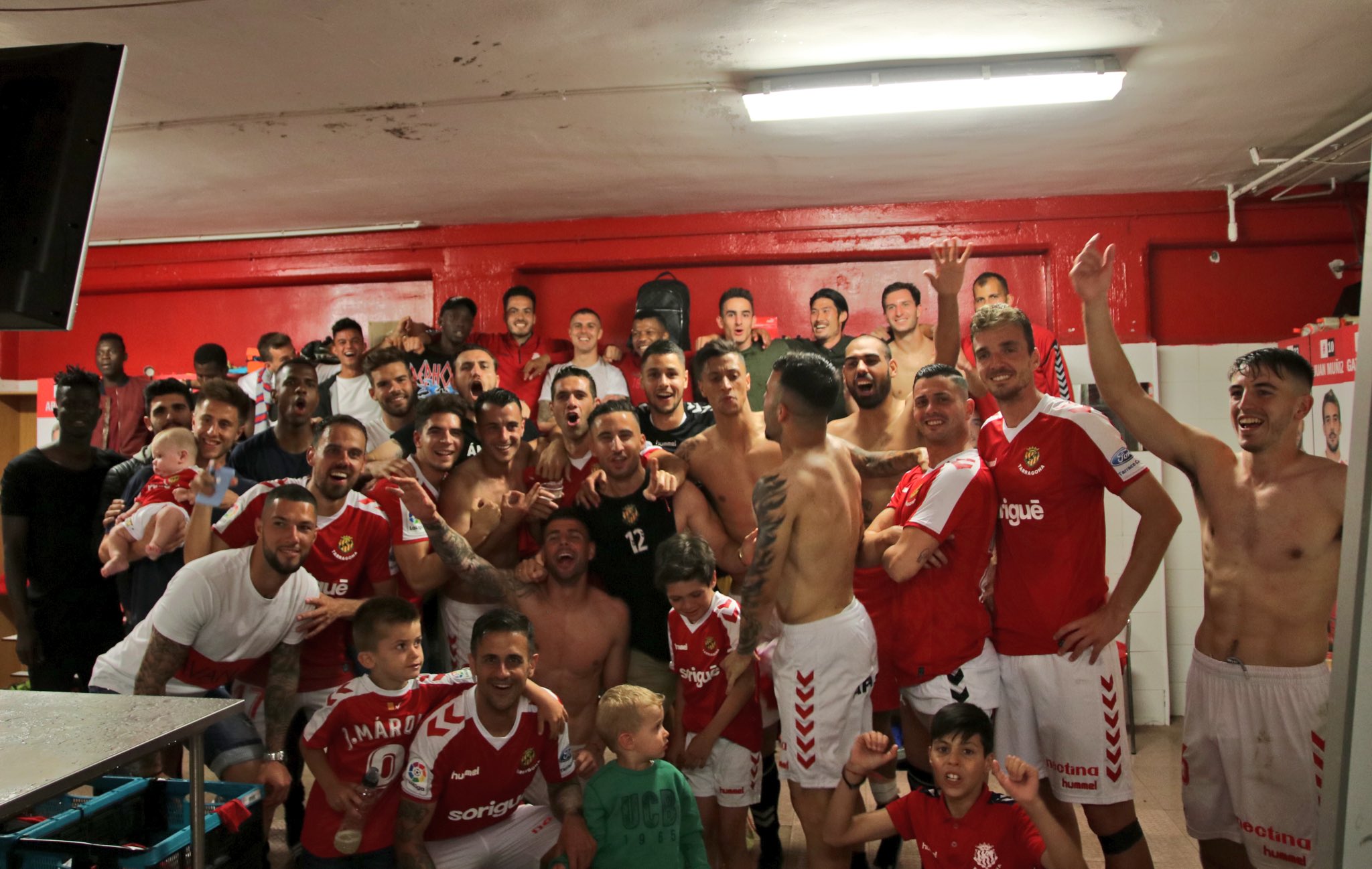 Primer va ser als vestidors del Nou Estadi, on es van fer la tradicional ‘selfie’ en la que hi apareixien pràcticament tots els futbolistes granes.
