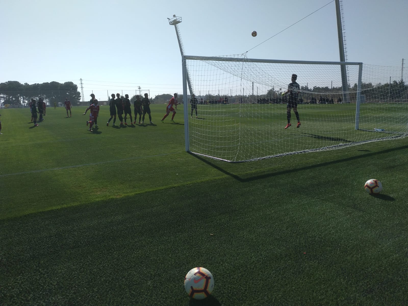 Els grana no han tingut cap problema durant la primera meitat i han seguit dominant fins a aconseguir el segon gol al minut 27, obra de Brugui després d’una bona passada a l’espai de Barrada que ha deixat al lateral sol contra el porter i no ha perdonat. Amb el 2-0 en el marcador s’ha arribat al descans.