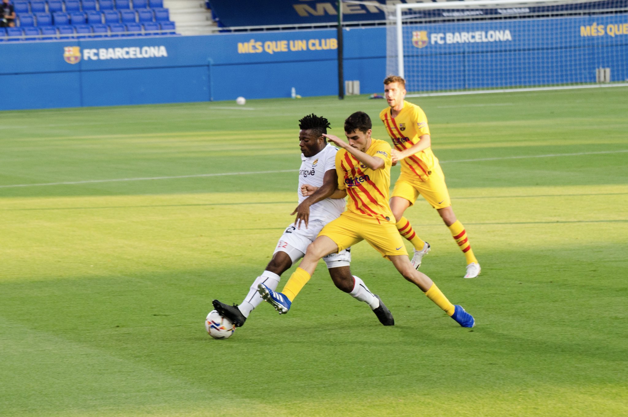 Al principi de partit han estat nerviosos. Se’ls ha notat tous en defensa i desencertats en atac en el moment de construir una acció de futbol combinatiu. De fet, el primer gol dels blaugrana ha arribat després d’una mala acció defensiva, on Marc Trilles no ha estat prou contundent per rebutjar la pilota i Albarrán ha perdut la marca de Dembelé, qui ha superat a Wilfred –qui estrenava titularitat amb el Nàstic-.
