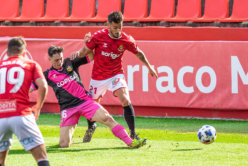 Gerard Oliva veia la targeta groga al minut 31 en l’enèssima falta en atac. El de Riudecanyes obria en excès els braços i l’àrbitre interpretava que el “9” del Nàstic colpejava amb el colze la cara de l’adversari.