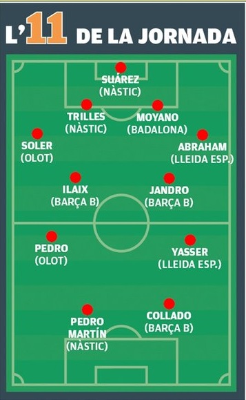Fins a tres futbolistes del Nàstic apareixen en l’onze ideal de la jornada que el rotatiu L’Esportiu treu setmanalment.